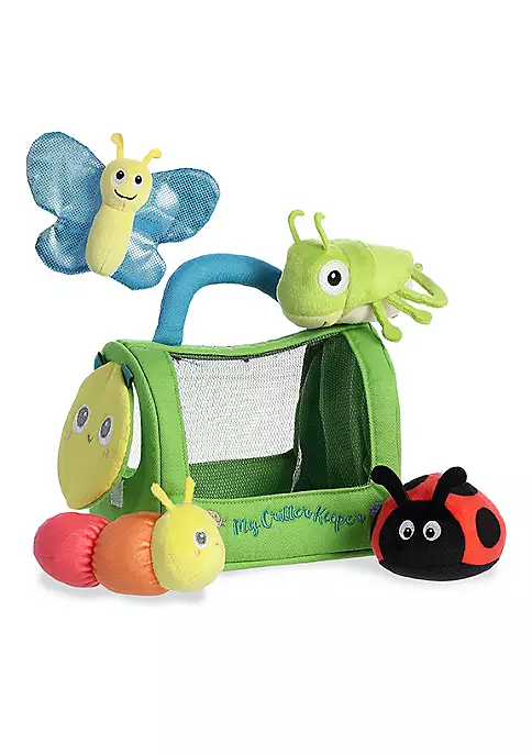 Baby Talk is a line of interactive plush toys made especially with your babies needs in mind Easy to take on the go and store! Each animal makes a different sound, rattles, or squeaks This set features a bug basket stuffed with your favortie insecta! It includes a butterfly that crinkles, caterpillar rattle and ladybug rattles and a cricket that makes a “boing” sound Each set is roughly 8 inches long from top to bottom while the critters are about 2-4 inches each8 inches long from top to bottomHigh quality materials Sure to become a favoriteHigh quality materials Sure to become a favoriteNon-replaceable batteries included Individual insects not sold separately Adult supervision is recommended