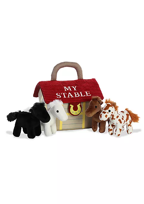 Baby Talk is ebba’s interactive plush collection, perfect for your curious little one Easy to take on the go! Each animal makes a different sound, rattles or squeaks This set features a horse stable stuffed with your favorite animals! Pinto and brown horses make a “neigh” sound, white horse is a rattle and black horse crinkles Each set is roughly 8 inches long from top to bottom while animals are 2-4 inches each8 inches long from top to bottomHigh quality materials Sure to become a favoriteNon-replaceable batteries included Individual animals not sold separatelyThis plush contains small parts but is suitable for all agesAdult supervision is recommended