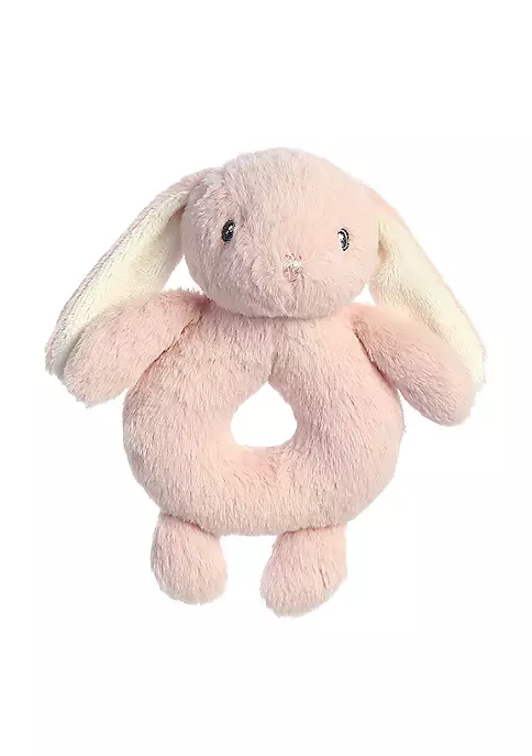 A beautiful collection of pastel bunnies with a trendy styling, Dewey bunnies are made of incredibly soft plush material. The Dewey Rose Ring Rattle is a take on a classic newborn accessory with a pink-colored rabbit.6 inches long from top to bottomHigh Quality materials for a soft cuddling experienceHigh Quality materials for a soft cuddling experienceAdorable embroidered facial detailsSuitable for all ages