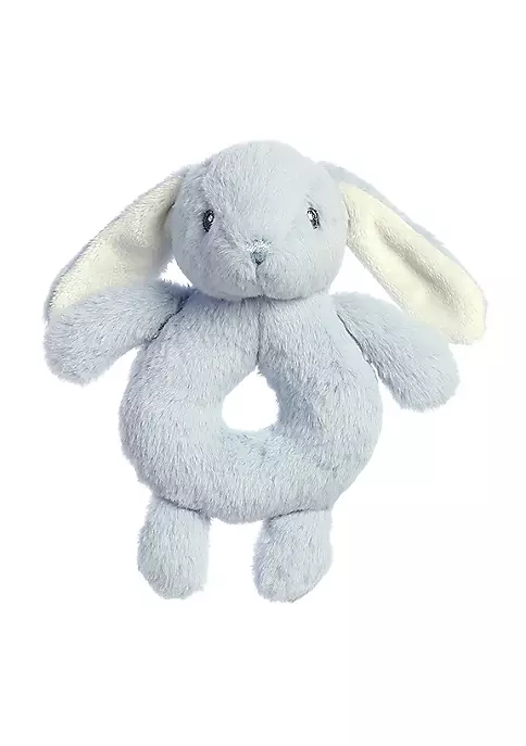 A beautiful collection of pastel bunnies with a trendy styling, Dewey bunnies are made of incredibly soft plush material. The Dewey Dusk Ring Rattle is a take on a classic newborn accessory with a blue-colored rabbit.6 inches long from top to bottomHigh Quality materials for a soft cuddling experienceHigh Quality materials for a soft cuddling experienceAdorable embroidered facial detailsSuitable for all ages