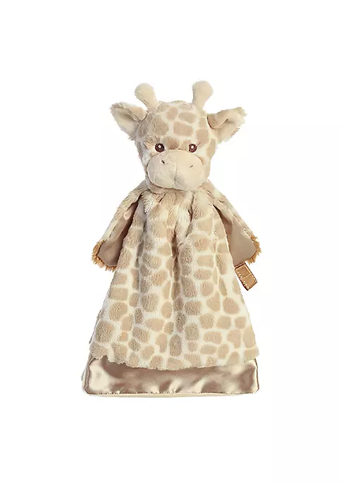 This Loppy Giraffe is in our latest baby blanket styling, the Luvie! It features a satin edge that babies love and a split style that allows the Luvie to lay over a parent’s shoulder as well as perform as a blanket for a baby or toddler The Luvie also has a hook & loop strap, perfect for attaching a pacifier or teether13 inches long from top to bottomHigh quality materials and hand construction makes for a unique and soft touchAdorable embroidered facial detailsMulti-purpose blanket for babiesSuitable for all ages
