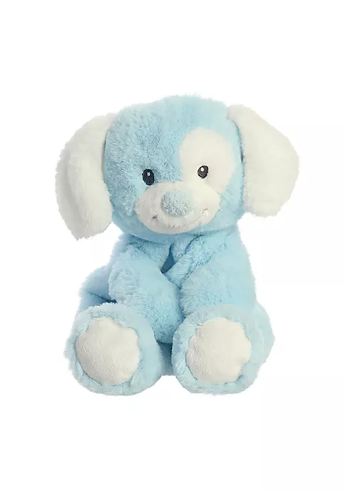 Poofies are poseable pups that have lightly stuffed bodies to create an easy to hold cuddling experience. This Poofies Pup Blue is decorated with a white spot over its left eye, floppy ears, and paw pads.12 inches in size.High quality materials make for a soft and fluffy touchQuality materials for a soft cuddling experienceAdorable embroidered facial detailsLightly stuffed bodies for a comfortable fit in a babies hold