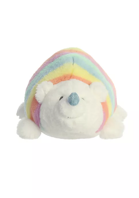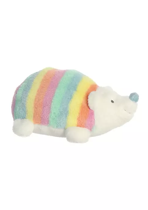 Catch the Rainbow with Rainbow Hedgehog! This uber soft cream hedgehog with a light blue nose lays flat on its belly with a pastel rainbow back.12 inches in size.High quality materials make for a soft and fluffy touchQuality materials for a soft cuddling experienceCute face that will steal your heartAdorable embroidered facial details